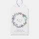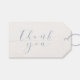 Dusty Blue och Grått Watercolor Blommigt Wedding Favor-Märkre: Gör bröllop eller möhippa-favoriter med de här förträffliga favoritmärkorden! På framsidan finns ord "Tack" i ett roligtens studentskript. Baksidan har en dammig blå och grått vattenfärgad blommigt-andedräkt med briden & groomens initialer, bröllop-datum, och ett tack. Du kan också använda dessa märkre att fästa välkomstpåsar för dina hotellgäster vid bröllop!