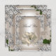 Tackkort Elegant Bröllop Kräm Rosa Silver Inbjudan hjärta duvor kräm, Slinga Vita Rosor