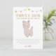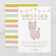 Söt lama tema barnkalas tack-kort med en illustration i tecknad stil av en lama med rosa kinder och färgglada ljusslingor längst upp. Standardmeddelandet tackar vänner för att de kommit till festen och firat. Texten högst upp säger "Tack en lama för att du kom till min fest!". Perfekt för en flickas födelsedagsfest.