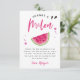 Modern och rolig tacksamhetskort för flickors födelsedagsfest med vattenfärg-illustration av en vattenmelon tropisk frukt i rosa. Texten säger "tack en melon".