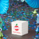 Äpplet i vårt öga! Rosa och röda äpple barn födelsedag med gingham.