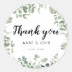 Tack! Eucalyptus Wasserfarbe, Bröllop Classic Round Sticker. Ideal für Ihre Hochzeit und einfach zu bearbeiten. Füllen Sie Ihre Daten ein, Sie können den Schriftart, die Position usw. individuell durch "weitere Personalisierung" auswählen.