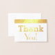 Säg Tack i Guld (eller Silver) Foil i två typer av typografi. Tack är på kortets framsida, insidan är tom för ditt Speciella tackmeddelande. Kortets baksida är designad med Foil Rand i varierande storlek.