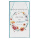 Utformningen har en känslig vattenfärgandekrans som består av vilda blommor i blå, röd, orange, violett och guld. Perfekt för vår och sommar utomhus bröllop.
