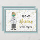 Tack doktor med detta designade kort av en kvinnlig läkare i vitt och med en ansikte mask på blekens stjärnbakgrund. Över lagt med text som lyder "Inte alla hjältar bäror kapslar". Redigerbar text på baksidan eller radera för en egen handskriven anteckning. Skapat delvis med bilder från Alice Smith från digiwebstudio.com
