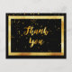 En elegant tackkort för en 50-årsfirande. En svart bakgrundsfärg och en falsk guldram. Med ett gyllene konfettiregn. På framsidan en handskriven stilspråk och texten: Tack!