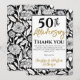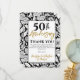 Ett minimalistiskt svartvitt tackkort för 50-års bröllopsdag. Denna slående solrosdesign är ett vackert sätt att skicka ett understatement men slående tack efter din 50-årsjubileumsfest. Linoeffekt-solrosor med svart typografi.