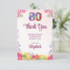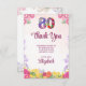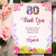 Blommigtens 80-årsdag tack för att du fick ett 80-blommors chic. Visa din tacksamhet i stil med det 80:e födelsedagskalortet för eleganten som innehåller klara accenter för blommigt och ett hjärtligt budskap. Kortets framsida visningar en stor "80" i färgstark blommigt och ord "Tack" i ett fet skript, följt av ett anpassade-meddelande. Baksidan har en rörande uppskattningston för att ha firat en milstolpe på 80 underbara år fylld med kärlek, skratt och minnen. Det här kortet är perfektens sätt att tacka dig för att du är närvarande på din speciella dag och för alla generösa gåvor som du har fått. Anpassa det här tackkortet enkelt så att det återspeglar dina egna unika känslor. Njut!