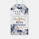 En vacker marinblå och silverfärgad presentetikett för 80-årspresenter. Denna ballonginspirerade design är den perfekta presentetiketten för festen. Anpassa med eget namn och meddelande. Guld- och blå typografi på vit bakgrund.