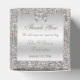 Elegant anpassningsbar personlig 25:e årsdagen för Bröllop, firande, för att tacka er för party favors-boxarna. Med ett vackert glitter med silver tryckt bildsekvensjuveler, noshörningar, gems mönster, söta blanka knärör och rosett band bilder och söt digitala diamanter på en gradientbakgrund i chic silver. Observera: Alla favoritrutor på Zazzle har platt tryckt bilder. Dessa klasser, glamorösa, glitz- och glamortacklådor för Silver bröllop-årsdagar dekoreras/trycks på båda sidor. Vackert, chic, trendig, den moderna 25:e Bröllop-årsfesten. Om du behöver hjälp med att anpassa produkten kontaktar du mig genom min butik. Jag kommer att vara lycklig för att hjälpa till. Jag har matchat inbjudan i min affär.