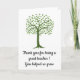 Tack för att du får ett hälsningskort om grönt träd växer upp med många vackra löv om grönt i form av hjärtan ett kort för din älskade lärare eller chef