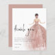 Budgetera Ro Guld Gown Brown Hair Quinceañera. Ett budgetmässigt prist mindre än 4,5 x 5,6 tum alternativ. Finns i ett SEMI GLOSS 110 lb-kort LAGRAR, vilket är standardalternativet (rekommenderas för inbjudningar), ELLER SATIN AVSLUTAR 80 lb PAPPER LAGRAR (perfekt för bilagor). Glam stil för din 15:e födelsedagsfest tack för baksidan av en brun snickare i en vacker klänning från ro guld till högerna, och Quinceañera i ett handskrivet stil-skript. Anpassa enkelt resten av texten till dina egna detaljer. En samordnande bakgrund för guld i ro finns på andra sidan som kan ändras till ett annat färg om du vill anpassa texten ytterligare, vilket även gäller färg i texten.
