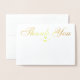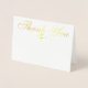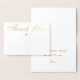 Ett underbart sätt att tacka dina gäster för att de deltog i din bröllopsfest, detta guldfolie-kort visar "Tack" skrivet med stora guldfolie-bokstäver, med en bröllopsklänning under. Det finns tre vackra fjärilar till vänster om klänningen, ett varmt meddelande väntar på dig inuti. Köp din idag!