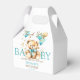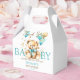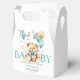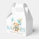 Nalle med luddig fluffy med en bog som väntar akvabblåbrun guld med ballonger guld sprinkles babydusch är bra tack vare boxen.