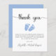 Tur budgetvänlig tackkort med "tack" i ett skript för snyggt med dekorationer och en blå vattenfärg på baby fötter. Underliggande kan du enkelt anpassa ditt tackmeddelande eller lämna tomt för en handskriven anteckning.