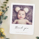 Den här charmerande fotobabyduschen tack vare din kortmall har en enkel design med en varm, handgjord smak som påminner oss om en vintage och ett snabbfoto. Vi har valt rundade hörn som standardkortsform, men vassa hörn av standardtyp är naturligtvis också ett underbart val, så försök att både titta i redigeringsläge och se vilka strejkor du har i finare! Framsidan visar ditt baby namn under ditt favoritfoto och ett "tack"-meddelande i ett modernt handskriftsskript i avslappnaden nedre fodral i svart. Färg i det här handskriftsskriptet inslag kan inte ändras. Texten från namn under den är en elegant guld-ton som heter Kalifornien Guld, som du kan välja att byta till ett annat färg eller ett annat teckensnitt. På baksidan har vi valt en bakgrund färg som heter White Smoke, det är ett mycket ljust grått som oftast är vitt. Du kan lätt ändra detta genom att antingen välja ett av de grundläggande färgerna i det redigerande verktygen, ange ett annat färg-nummer i ställe om du har en särskild nyans i åtanke som du hittade i din forskning, eller genom att tittar vid färg spektrum verktyg och välja något vid synhåll. Eller så kanske du bestämmer dig för att göra basen genomskinlig, så att färg i den pappra helt enkelt blir som bakgrundston, som vi har gjort på kortets framsida. Vi har plockat grått som färg som standard för texten på baksidan. Vi har satt platshållartext på baksidan så att du kan byta ut den mot ditt eget meddelande när du vill, men känn inte begränsad av det här. Om du föredrar att ta bort platshållartexten helt och hållet och behålla tillbaka den helt tom så att du i stället kan skriva en handskriven anteckning på varje kort, kan du göra det. Eller så kanske du vill ersätta vår text med ditt eget tacksamhetsbudskap och din egen stängning och sedan lämna underskriften till namn när du får korten. Du kan också ändra teckensnittet och ändra fodral från det övre fodral-utseende som vi har lagt till. I fodral vill du göra namn till en del av kortets utformning i stället för att skriva på handen, väljer vi ett mjukt men elegant handskriftsteckensnitt för vårt exempel namn som du kan redigera för egen del eller ta bort utan att byta ut enligt dina önskemål. Se hur som helst till att du tar bort vår text för prov/platshållare på båda sidor av kortet och kom ihåg att byta ut platshållarfotot på framsidan mot ditt eget. Den pappra standardtypen, projektionsyta, har en mjuk värme och motstår smörjning, så det är ett underbart val att skriva ett eget meddelande, om du väljer att göra det. Du kan ändra detta till halvglans med en nod till ett ögonblickligt fototyputseende, eller en av zazzles bra Namnteckning eller Premium till kostym till stil. Använda den intuitiva designen verktyg, ditt favoritfoto och din inspiration och gör den här eleganta fotobabyduschen tack vare att du kortar din unika bild!