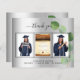 Lägg till 3 av dina foton, lodrät storlekt, ett datum, namn och tackkortet. Ett faux silver tittar bakgrund med svart text och ram, eucalyptus sprig. Texten: Tack på framsidan och ditt namn på baksidan skrivs med ett handskript med snyggt med dekortecken.