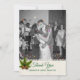 Vinterbröllopet i snyggt, stil, fick ett tack, med anpassningsbarnas foto som täcker det mesta av framsidan. Bilder av ett elfenbensband på grund-fronten med söt grönt gräs med gräs och snöre gräns. En festlig grönt och guld mönster täcker kortets baksida. Anpassa grönten och ersätt exempelfotot med eget. Matchande bröllop-produkter finns tillgängliga.