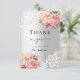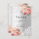 En modern och elegant möhippa tack vare ditt kort. En faux silver tittar bakgrund. Dekorerad med rosa ros, blommigtar och snöre. På framsidan texten: Tack, framtida fru. Tillbaka: Mall för tackkort och namn.