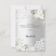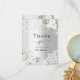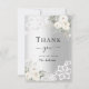 En modern och elegant möhippa tack vare ditt kort. En faux silver tittar bakgrund. Dekorerad med vit ros, blommigtar och snöre. På framsidan texten: Tack, framtida fru. Tillbaka: Mall för tackkort och namn.