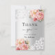 En modern och elegant möhippa tack vare ditt kort. En faux silver tittar bakgrund. Dekorerad med rosa ros, blommigtar och snöre. På framsidan texten: Tack, framtida fru. Tillbaka: Mall för tackkort och namn.