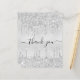 Ett feminin och en elegant tack. En faux silver metallisk tittar bakgrund färg. Med faux glitter-droppar, färgdroppar. På framsidan av stora bokstäver och texten: Tack. Tillbaka: Anpassa och lägg till tackkort och namn. Namn är skrivet med ett modernt handskript i stil med dekorationer. Om du bara vill behålla utslagen tar du bort exemplet namn lämnar du blankstegen eller symbolerna framför och efter namn.