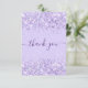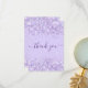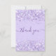 Ett feminin- och elegant födelsedagstack. En violett, lavender färgads bakgrund färg. Med lila, faux glitter stoft. På framsidan av stora bokstäver och texten: Tack. Tillbaka: Anpassa och lägg till tackkort och namn. Namn är skrivet med ett modernt handskript i stil med dekorationer.