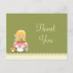 Detta förtjusande flick kalas-tack för att du har ett mejeritema. Det finns en älv med blonda hår sitta på ett svamp med lite möss under. Bakgrunden är ett oliv grönt färg med polkadoter. Grund har en gräddskammussla färgad kant med rosa rand. Copyright © Zenware Design com