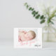 Trendigets moderna, minimala rosa-typografi-manuset Flickduschbudget för små tack som du kan ta med personligen med den nyfödda baby-fotot och din text.
