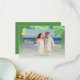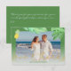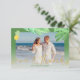 Tropical grönt lövs och en gult ananas överlägg på ditt foto och tack för att du faux guld-skript skapar ett modernt vismligt tropiskt målbröllop tack vare ditt kort. Denna samling är perfekt för en modern strand, hav, oceanfront, kust, tropisk, nautisk eller destinationsort som kallas bröllop. Anpassa den med ditt foto (liggande) och din text!