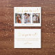 eleganten tackar dig för tre foton bröllop kollage minimalistisk guld-handskriftskort på två sidor, på baksidan tack för ditt budskap.