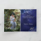 En vit, ojämn färgad, dekorerad med blå ro, blommor. Inuti: 1:a av dina foton, lodrät storlekt. Ditt tackkort. Tillbaka: Andra av dina foton, landskap storlekt.