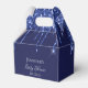 Elegant, klassiskt, glamoröst babyskor. En marin blå bakgrund färg. På framsidan och baksidan: Anpassa och lägg till ett namn och ett datum. Namn är skrivet med ett modernt handskript i stil. Dekorerad med blå faux glitter-droppar, färgdroppstift.