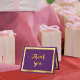En chic lila färg och en faux guld ram. Med ett gyllene konetti regn. På framsidan finns ett handskript i stil och texten: Tack! Inuti: Mall för tackkort och namn