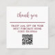 Personlig - Tack för ditt kort med QR-kod - Perfekt för små företag! Visa din uppskattning för kunder med anpassadet Tack-kort med en QR-kod som ger extra bekvämlighet. Det här kortet är idealiskt för små företag och ger tacksamhet med ett hjärtligt budskap: "Tack för ditt köp." Att erbjuda en rabatt till dina lojala kunder är ett utmärkt sätt att säga, tack!