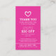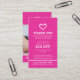 Ljusa shock rosa och vita skönhets- eller kosmetikaföretag lägger till din egen anpassningsbar för produktfoto. Idealiskt att skicka ut till kunder som hänvisar ditt företag till en vän som ett tack och en uppmuntran att köpa igen och hänvisa ditt företag till något annat. Inkluderar Instagram-logotypen och utrymmet för ditt tack samt ett samtal om att vidta åtgärder för att få kunder att återvända till webbplatsen för att köpa igen från ditt företag eller boka om. Andra matchande artiklar är tillgängliga. Designad av www.mylittleeden.com om Zazzle.