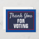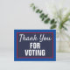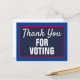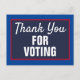 Tack för att du röstar design. Eftersom många amerikanska medborgare använder sig av att rösta per post under pandemin, och andra drar nytta av tidig personlig röstning, har vi en valdagen men många röstningsdagar. Tacka dina grannar för att de röstar med denna tydliga, koncisa och okomplicerade design i anpassningsbara färger. Beskrivning av design: En mörkblå rektangel med en vit kant upptar större delen av designutrymmet. I mitten av rektangeln står orden "Tack för att du röstar" i vit, versal sans-serif-teckensnitt. Utanför rektangeln finns en medelblå kant för kontrast. Färgerna är anpassningsbara.