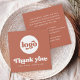 Ett stort tack för branschen som innehåller texten "Tack" i ett stil-teckensnitt. Vit text (eller anpassningsbar färg) på en terracotta brun bakgrund. Ladda upp logotypen längst fram och lägg till anpassningsbar på baksidan. Du kan byta färg, flytta och ändra storlek på inslag med designen verktyg.