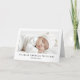 Tack för nyfödd bebis-kortet med ditt foto och baby namn och födelsedatum på framsidan. Anpassningsbar inuti meddelandet. Byt färg och typsnitt, flytta och ändra storlek på inslag i verktyg.