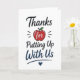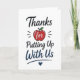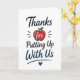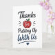 En rolig och relaterbar lärare uppskattning design med “Tack för att du står ut med oss”. Detta lättsamma budskap speglar den vardagliga klassrumserfarenheten på ett humoristiskt och ärligt sätt. Perfekt för studenter som vill säga tack med ett leende, skapar denna design en minnesvärd och engagerande present.