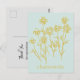 Ett vykort att ge till kunderna för att tacka dem för deras affärer dekorerat med kamomillblommor i en varm gul nyans på en ljus turkos bakgrund. På baksidan finns en mjuk grå nyans och text du kan redigera för att passa dina behov.
