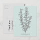 Ett vykort att ge till kunder för att tacka dem för deras verksamhet dekorerat med rosmarinört i en varm grå nyans på en ljus turkos bakgrund. På baksidan finns en mjuk grå nyans och text du kan redigera för att passa dina behov.