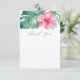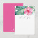 De här tackkorten innehåller tropiska monstera handflatan löv och rosa hibiscus blommor. Ord "Tack" är inställt i modern skripttypografi. Ett botaniskt val för ett luau- eller Hawaii-tema. Victoria Grigaliunas från Do Berätta för en Belle.