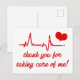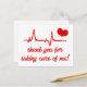 NewParkLane - Medicinsk tack-kort, med ett hjärtslag, ett hjärta och 'Tack för att du tog hand om mig' citat i söt röd typografi.