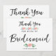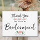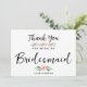 Bröllopsdag Brudtärna Tackkort. Vattenfärg Blommor med Svart och Vit Casual Skrift.