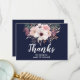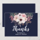 Lantlig blommig tack för att du var min brudtjänstkort med modern vit handskrift. Framsidan och baksidan av kortet är i chic marinblå.