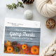 Vår familj är tacksam för vårt nya hem. Ett sött pumpafotografi för tillkännagivande om flytt för en familj som flyttade strax före högsäsongen på hösten. Ett roligt höst-kort för ändring av adress.