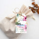Märkre för tropisk strandbröllop med hibiscus, vattenfärgsstrand rosa hibiscus blommar handflatan löv för destinationsstrandbröllop tack för att du föredrar taggar med brud och groom namn