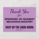 Tack för att ni talade upp mot religiös bigotteri. Fortsätt det viktiga arbetet. #PeopleOfConscience