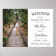 Välkomna bröllopsgäster till er ceremoni eller mottagning med en elegant specialgjord fotoposter i storleken 18"x24". Bild och all text är enkla att anpassa. (TIP: Ett enkelt sätt att centrera ett foto exakt som du vill är att beskära det innan du laddar upp det till Zazzle-webbplatsen.) Den moderna minimalistiska svart-vita designen har en bild som du väljer, chic handskriven kaligrafi, art deco-inspirerad vintage-typografi och anpassningsbara meddelanden som lyder "välkomna till vår eviga lycka" och " tack för att du kom". Denna välkomstskylt till bröllopet är ett stilrent sätt att dela en förlovningsbild samtidigt som den lägger till en personlig touch till er festliga dekoration på er speciella dag. Grattis till bruden och br